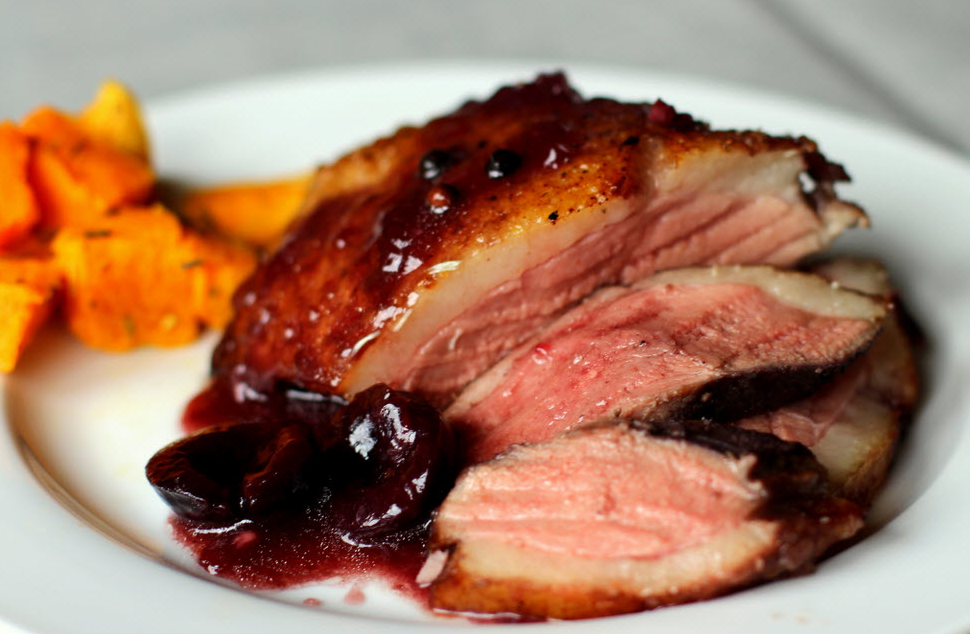 Pan-Seared Duck Breasts with Pinot Noir & Cherries