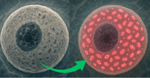 Her mitochondria multiplied by over 200% and started glowing with activity.
